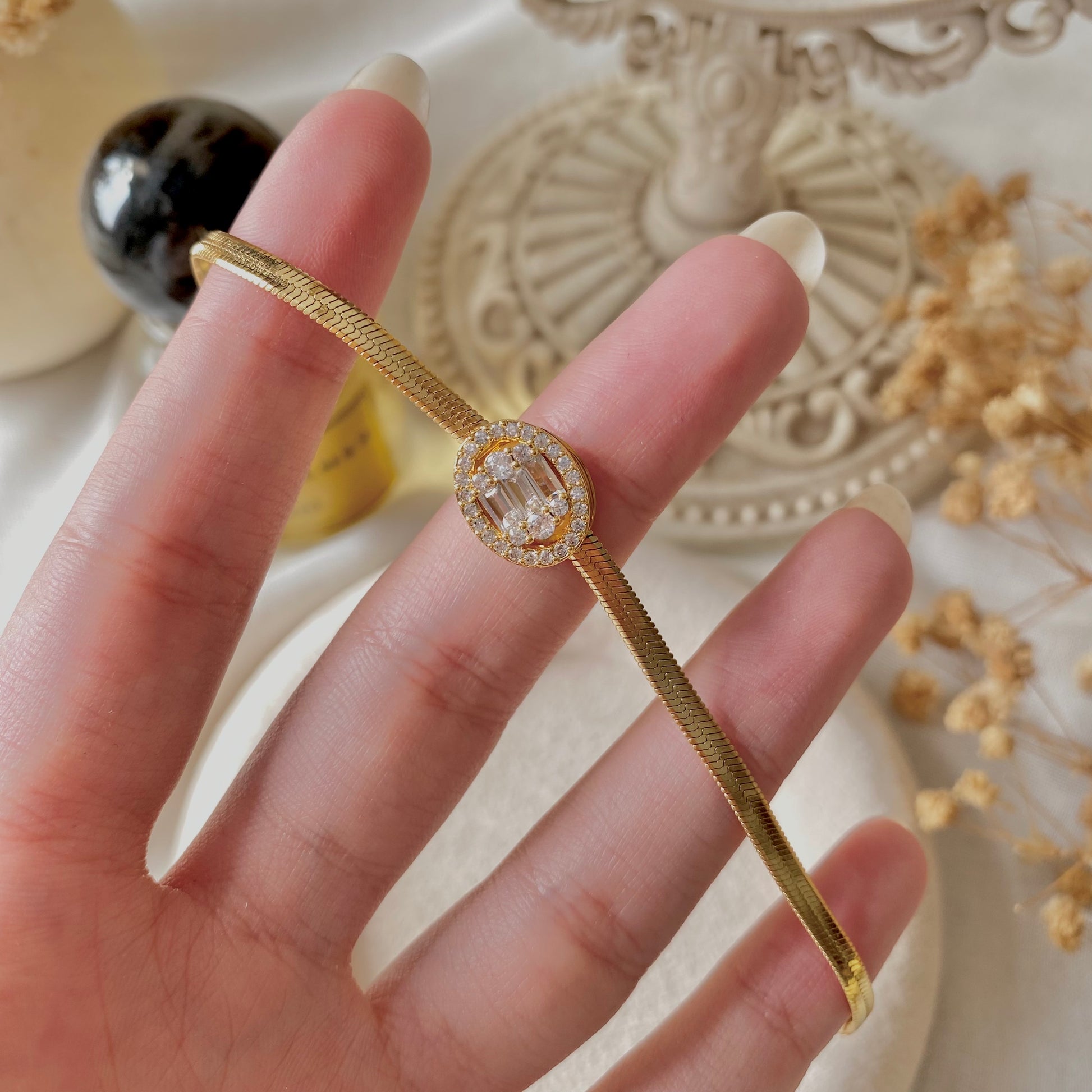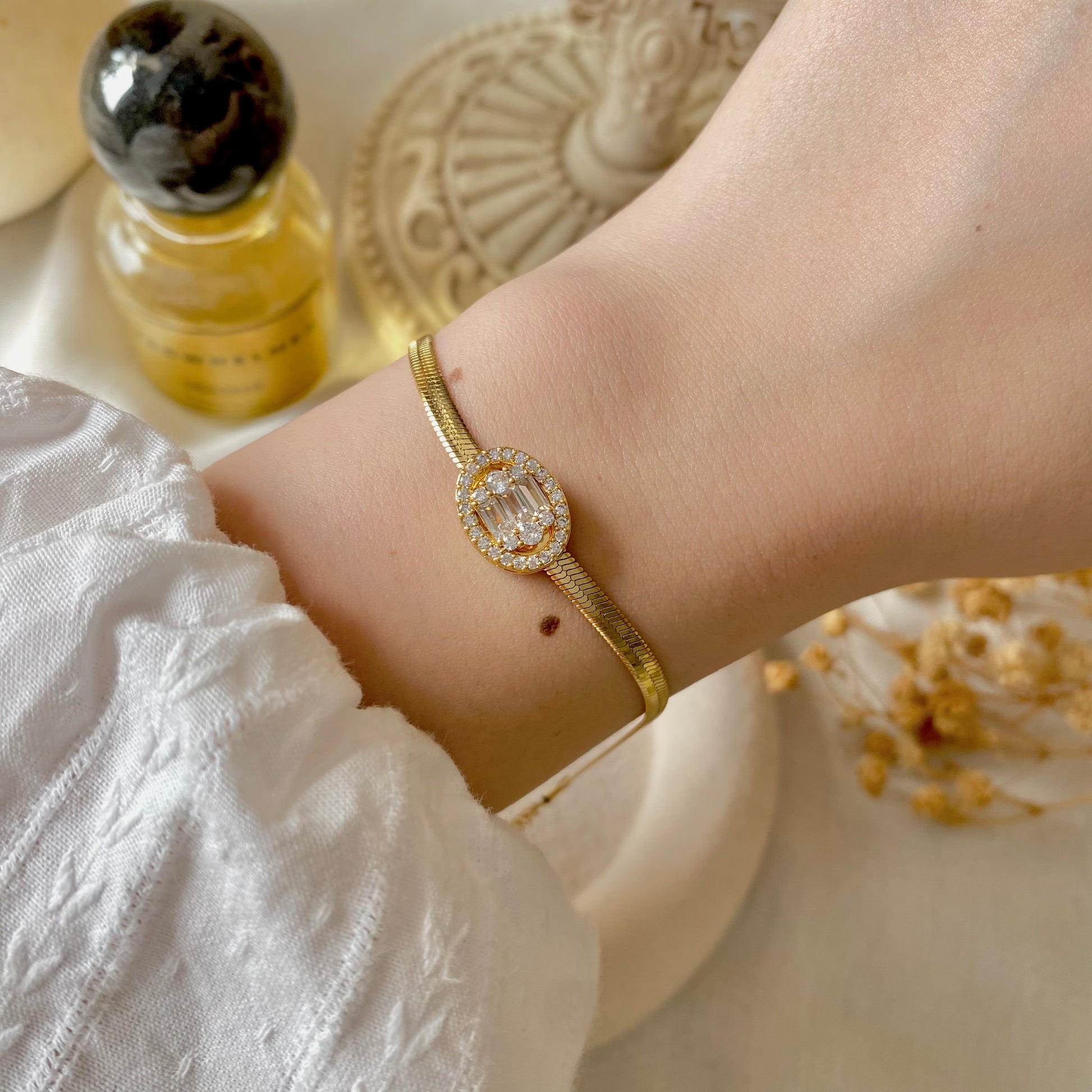 Our beautiful 18K Gold Plated bracelet is the perfect accessory for any occasion. Crafted from high-quality materials that wont tarnish are hypoallergenic. Make a chic style statement with this timeles piece.
